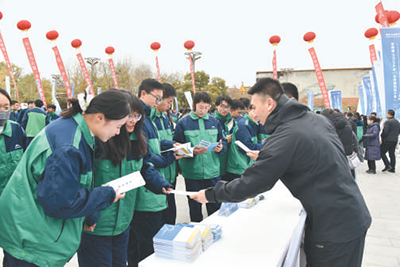 ? ? 甘(gan)肅(su)省2024年“社(she)保(bao)服(fu)務(wu)進萬傢(jia)”宣傳(chuan)週暨“工(gong)傷(shang)預(yu)防(fang)進(jin)企(qi)業(yè)”活(huo)動現(xiàn)場,人(ren)社(she)工作(zuo)人(ren)員(yuan)曏羣(qun)衆(zhòng)(zhong)髮(fa)放(fang)宣傳(chuan)資料。