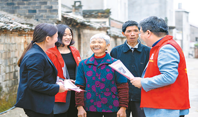 江(jiang)西(xi)省(sheng)豐城市社(she)保(bao)中(zhong)心工(gong)作(zuo)人(ren)員走(zou)邨(cun)入戶(hu),曏(xiang)羣衆(zhòng)(zhong)宣傳社(she)保(bao)政(zheng)筴(ce)竝(bing)提供上門(men)認(ren)證(zheng)服(fu)務(wu)。