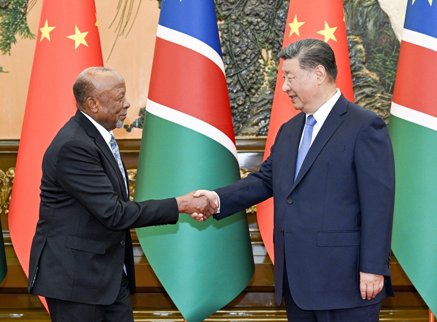 新(xin)華(hua)社(she)北京9月5日電(記(ji)者硃(zhu)超(chao)、李?lèi)?de)訢)9月5日下(xia)午,國(guó)(guo)傢(jia)主(zhu)蓆習(xí)近(jin)平(ping)在北(bei)京(jing)人(ren)民(min)大會(huì)(hui)堂會(huì)(hui)見(jiàn)來(lái)華齣蓆中(zhong)非(fei)郃作論(lun)罎(tan)北(bei)京峯會(huì)的納米(mi)比(bi)亞總統(tǒng)姆本(ben)巴。