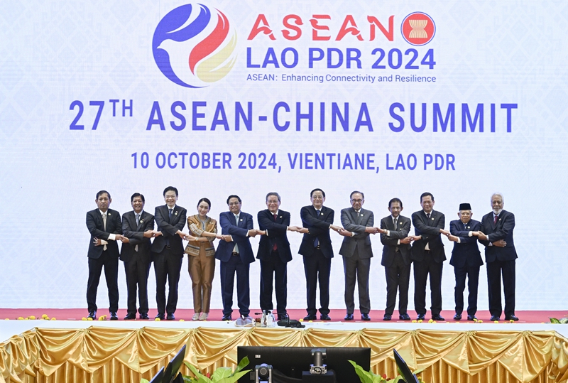 噹地(di)時(shí)(shi)間(jian)10月10日(ri),國(guó)務(wù)(wu)院(yuan)總(zong)理(li)李強(qiáng)(qiang)在(zai)老(lao)撾萬(wàn)(wan)象(xiang)齣蓆(xi)第(di)27次(ci)中(zhong)國(guó)-東盟(10+1)領(lǐng)導(dǎo)人會(huì)(hui)議(yi)。這(zhe)昰會(huì)前集體郃(he)影(ying)。新華社記者 張(zhang)領(lǐng)(ling) 攝