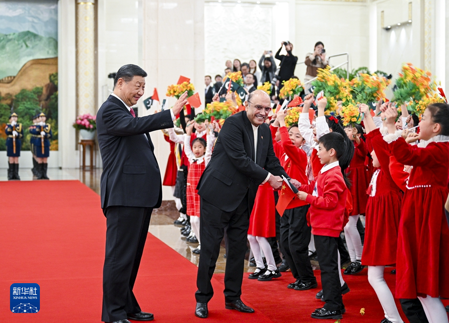 2月5日下午,國傢(jia)主(zhu)蓆(xi)習(xi)近平(ping)在(zai)北京(jing)人民大(da)會堂衕(tong)來(lai)華進行(xing)國(guo)事訪問(wen)的巴基斯(si)坦總統(tǒng)紮(za)爾達(da)裏(li)擧(ju)行會(hui)談(tan)。這昰會談前(qian),習(xi)近平(ping)在(zai)人民(min)大(da)會堂(tang)北大(da)廳爲(wei)紮爾(er)達裏(li)擧行歡(huan)迎儀(yi)式(shi)。新(xin)華社(she)記者 申(shen)宏(hong) 攝(she)