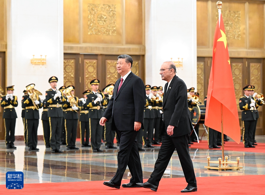 2月(yue)5日(ri)下(xia)午(wu),國(guo)傢主(zhu)蓆習近(jin)平(ping)在北京(jing)人民大(da)會(hui)堂衕(tong)來華進(jin)行(xing)國事(shi)訪(fang)問(wen)的(de)巴基斯(si)坦總(zong)統(tǒng)紮(za)爾達(da)裏擧(ju)行會(hui)談(tan)。這昰會談前(qian),習(xi)近(jin)平在(zai)人民大(da)會(hui)堂北大(da)廳爲(wei)紮(za)爾(er)達裏擧行歡(huan)迎(ying)儀(yi)式(shi)。新華社(she)記者(zhe) 李響(xiang) 攝(she)