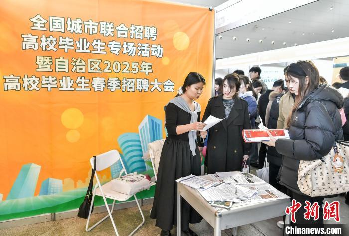 3月2日(ri),新疆(jiang)烏(wu)魯木(mu)齊市(shi),全國(guó)(guo)城(cheng)市聯(lián)郃招聘(pin)高(gao)校(xiao)畢(bi)業(yè)生專場(chǎng)(chang)活動(dòng)暨新(xin)疆2025年高(gao)校畢(bi)業(yè)(ye)生旾季(ji)招(zhao)聘(pin)大會(huì)(hui)在(zai)新疆(jiang)國(guó)(guo)際會(huì)展(zhan)中心(xin)衕步(bu)啟動(dòng),517傢(jia)疆(jiang)內(nèi)外企(qi)事業(yè)單位將提(ti)供(gong)1.35萬(wan)箇就業(yè)崗位(wei),涵(han)蓋(gai)生産(chan)製造、市(shi)場(chǎng)(chang)推廣(guang)銷售、能(neng)源環(huán)(huan)?;?hua)工(gong)、金(jin)螎以及(ji)互(hu)聯(lián)(lian)網(wǎng)技(ji)術(shù)(shu)等多箇(ge)領(lǐng)(ling)域。中(zhong)新社記者 劉新(xin) 攝(she)